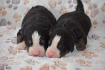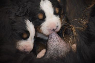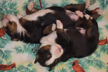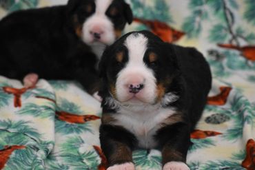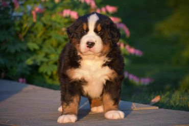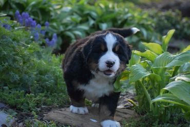 Kim is a big, fun four year old. She always has a warm, joyful heart for everyone and loves to meet everyone who visits our farm. Kim is athletic, goofy, and totally a great family dog. She is caring about the other animals, kittens, and children. She has produced lovely pups with moose in the past and we look forward to a repeat litter. Click on the button below for her Berner Garde Page link.